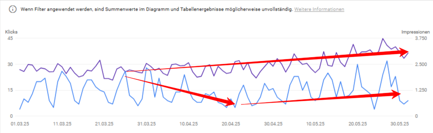Muster 3: Impressionen steigen, Klicks divergieren — der stille Relevanzverlust